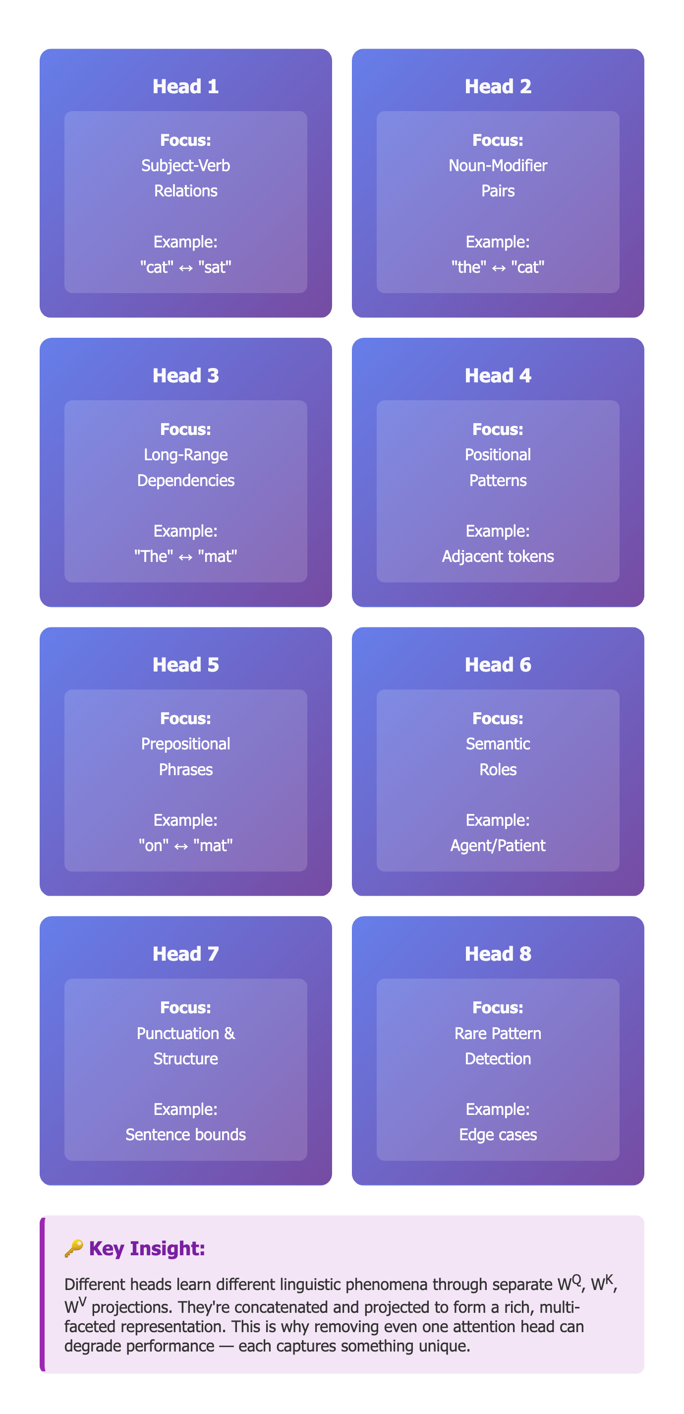 Solution: Run h attention operations in parallel (typically 8-16 heads).
